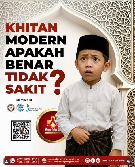 Khitan Modern di Bojonegoro: Benarkah Benar-Benar Tidak Sakit? Bagi banyak orang tua, momen mengkhitankan anak sering kali dibarengi dengan rasa cemas. Pertanyaan yang paling sering muncul—seperti yang terpampang pada poster di atas—adalah: “Khitan modern, apakah benar tidak sakit?”